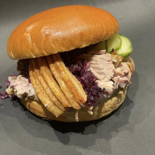 I Frk. Enøs Foodtrucks kan du købe franske hotdogs, forskellige burgere, sprøde pommes frites osv. Det helt store nummer er langtidsstegt flæskestegssandwich. Der er også sodavand og andre drikkevarer på køl.