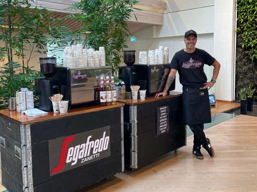 Er du kaffetørstig, så har Michael fra Kaffevogne sat en stor kaffebar op inde på biblioteket. Her kan du købe forskellige frisklavede kaffespecialiteter – espresso, cappuccino, café latte, americano osv. Der er også te og alm. filterkaffe på menuen, og endda kage til den søde tand.